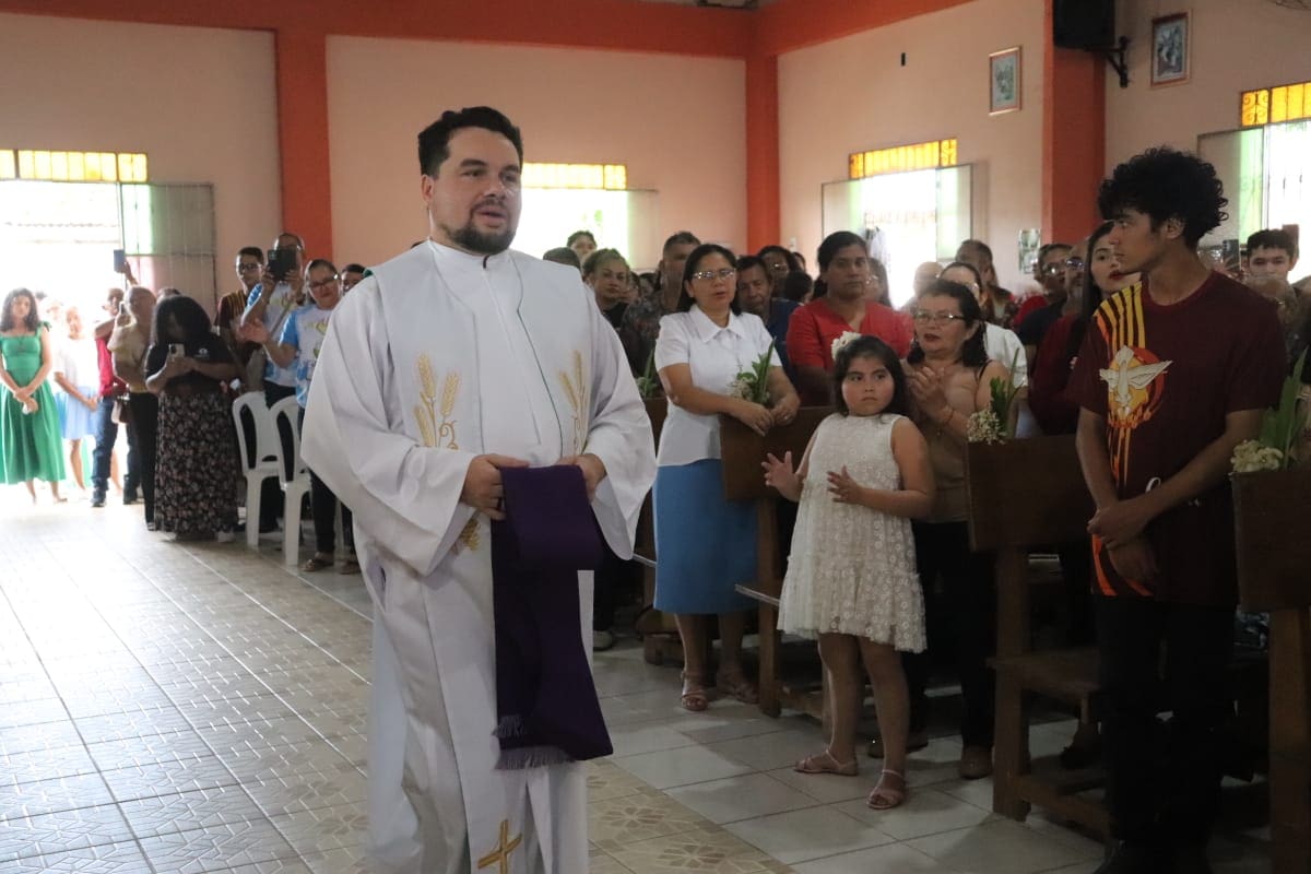 A celebração foi marcada por expressões de carinho e reconhecimento ao trabalho pastoral do Pe. Alex Palmer, SJ, que encerra seu serviço na comunidade, e pela acolhida afetuosa ao Pe. José Paulino Martins, que assume com o compromisso de continuar fortalecendo a caminhada de fé e missão na área missionária.
