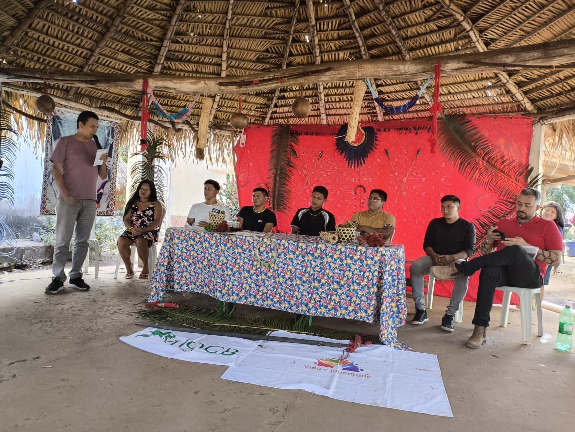 Juscelio Pantoja contribuiu no diálogo sobre o cenário e os encaminhamentos das organizações, movimentos e coletivos em vista da realização da COP30, que ocorrerá em novembro, em Belém (PA). Animando a juventude indígena presente à reflexão de temas-chave relacionados à conferência, incentivou a participação coletiva a partir da convergência e do fortalecimento de pautas necessárias à defesa e conservação dos territórios e à permanência dos povos nesses espaços, com seus direitos garantidos. Ele ressaltou a importância da realização de escutas das Terras Indígenas próximas à conferência, articulando possíveis colaborações com outras organizações, movimentos e entidades, destacando a presença da Articulação REPAM-COP30 e da Igreja rumo à COP30.