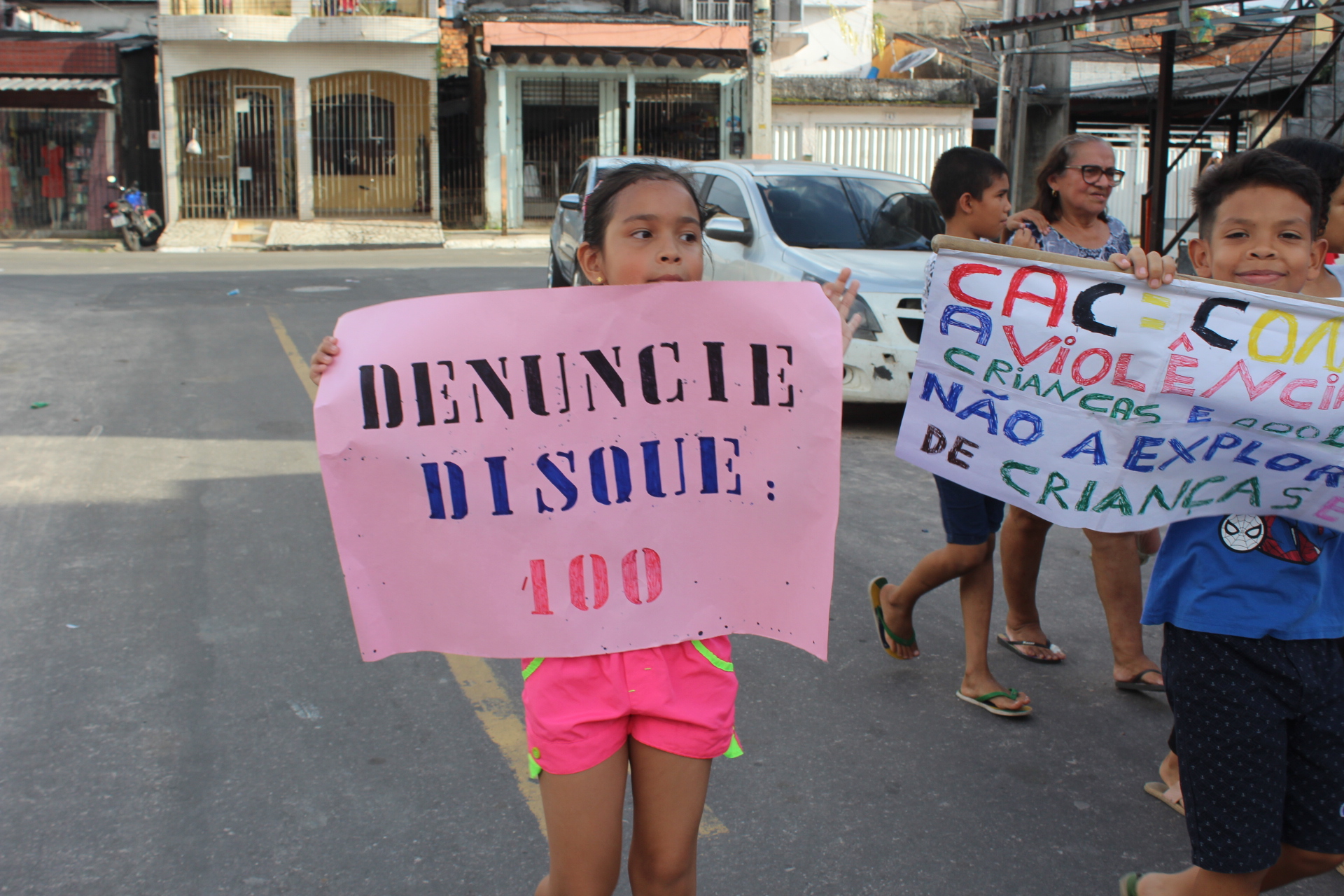 A incidência dessas atividades e da discussão do 18 de maio também ocorreu por meio de caminhadas nos bairros de Belém e adjacências, alertando a comunidade sobre a importância da data com a entrega de panfletos, cartazes, banners, palavras de ordem e música… Tudo feito pelos (as) educadores (as) e as crianças, de forma lúdica, brincante e poética, mobilizando a todos (as) para o combate à violência infantil. “Lembrando sempre que proteger nossas crianças e adolescentes é um dever de todos nós”, afirmou Ingridy.