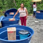 Leia Pereira, residente na comunidade Nossa Senhora Auxiliadora, destaca a importância dos kits para sua comunidade: “Essa campanha é muito importante para nós, pois a chegada dos kits ajudará no armazenamento de agua potável em diferentes estações, mas principalmente nesse momento, onde sem água potável nós sofremos com algumas doenças, principalmente entre as crianças e idosos. ”