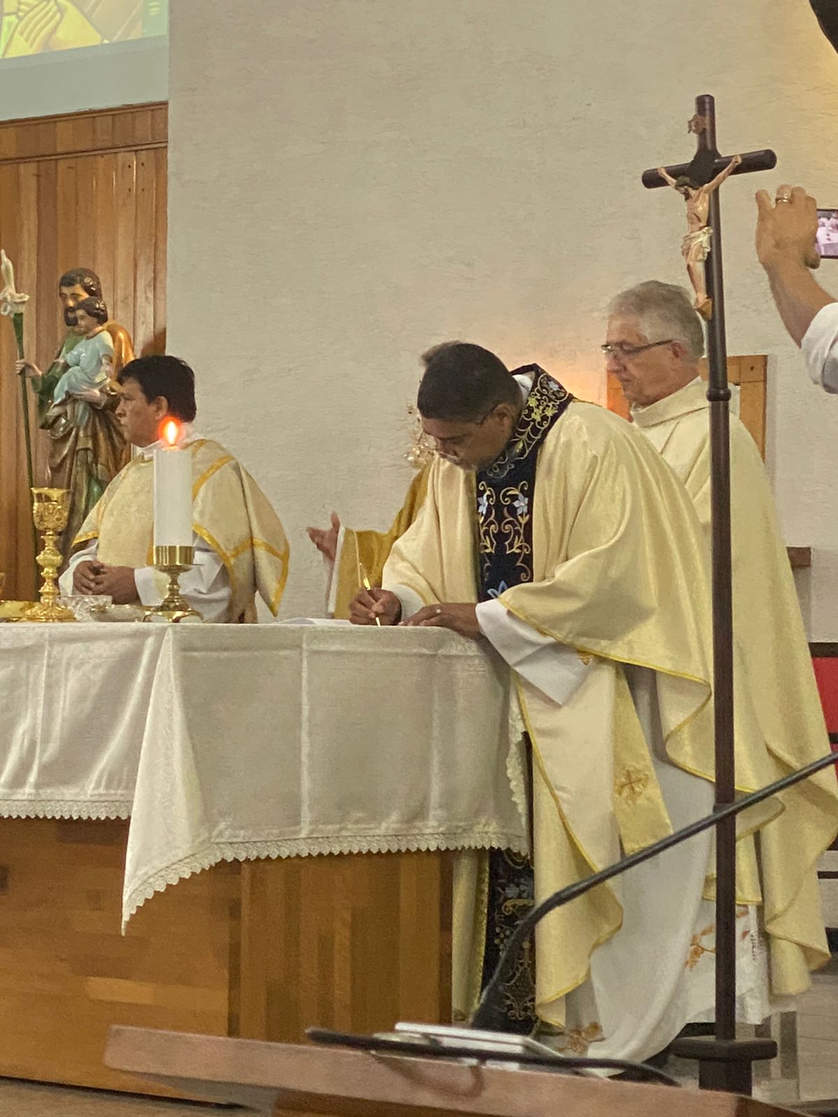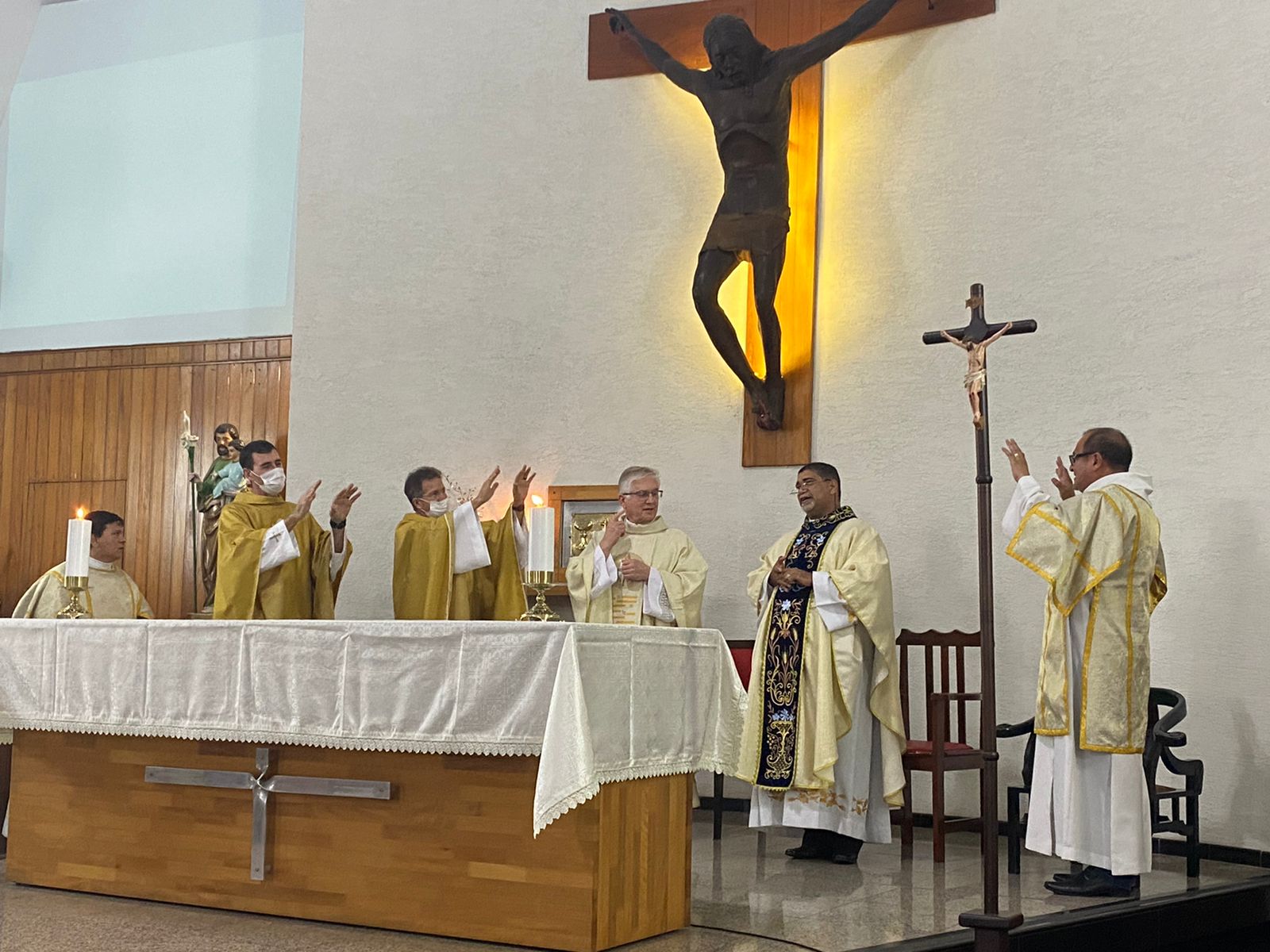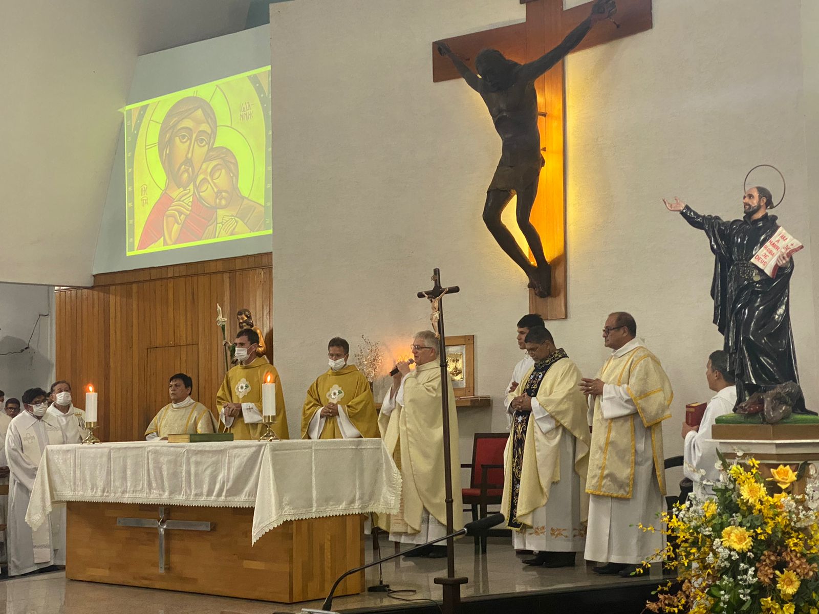 A celebração eucarística foi presidida pelo Provincial do Brasil, Pe. Mieczyslaw Smyda, SJ, e concelebrada por uma grande parte de padres jesuítas que atuam na Pan-Amazônia, entre eles estavam o Presidente da Conferência dos Provinciais da América Latina e Caribe (CPAL), Pe. Roberto Jaramillo, o Delegado para a Preferência Apostólica Amazônia (PAAM), Pe. David Romero, e Pe. Valério Sartor, Superior e Coordenador do Núcleo Apostólico Pará.