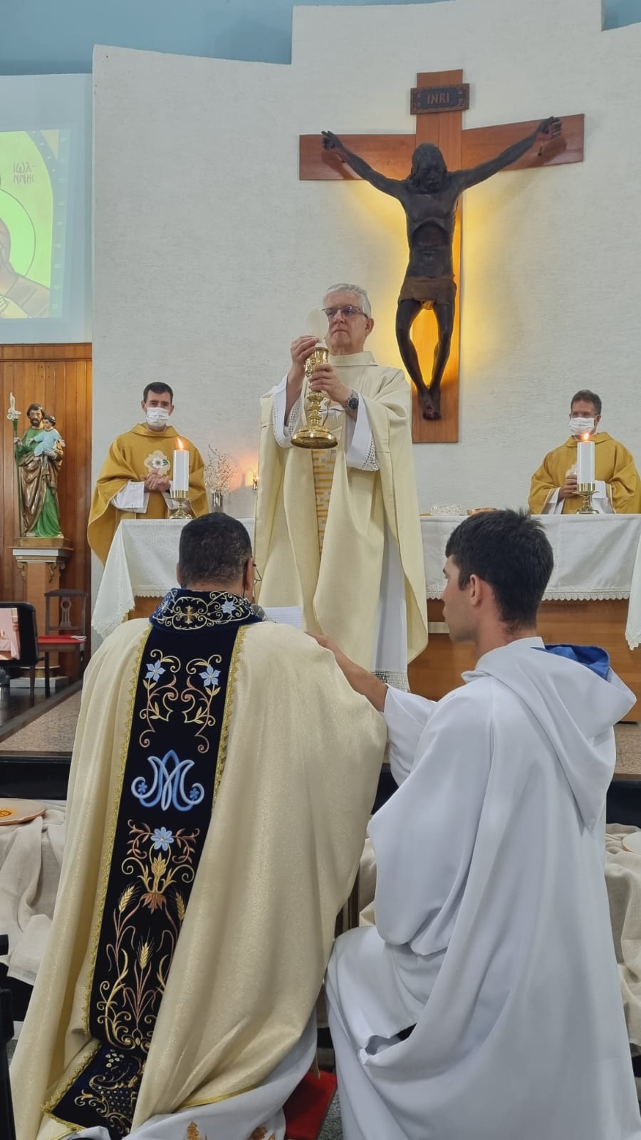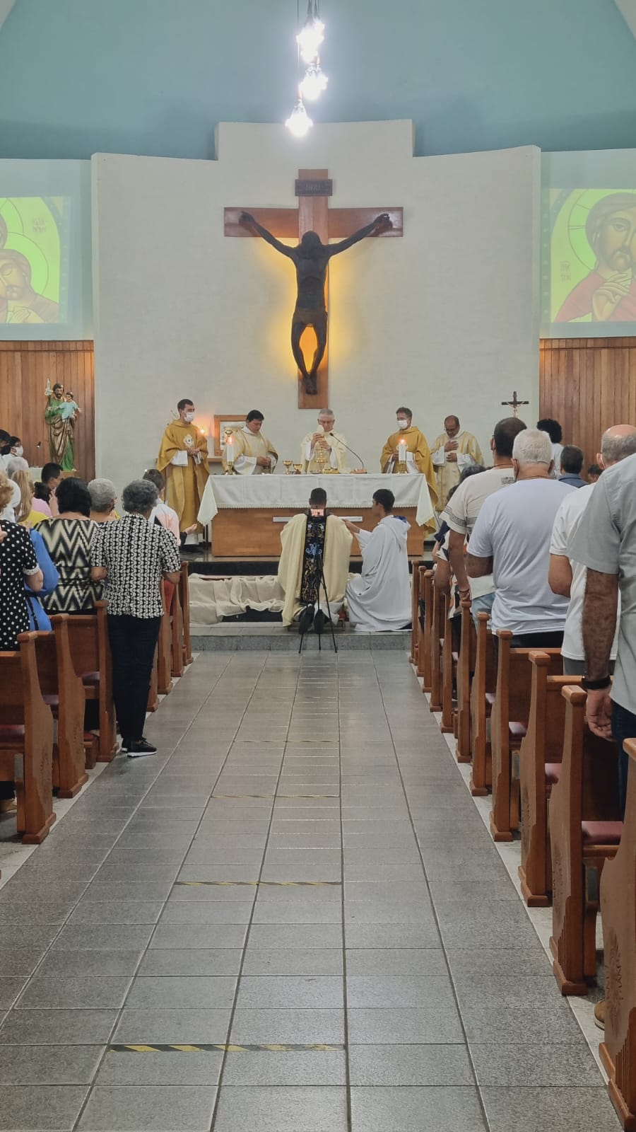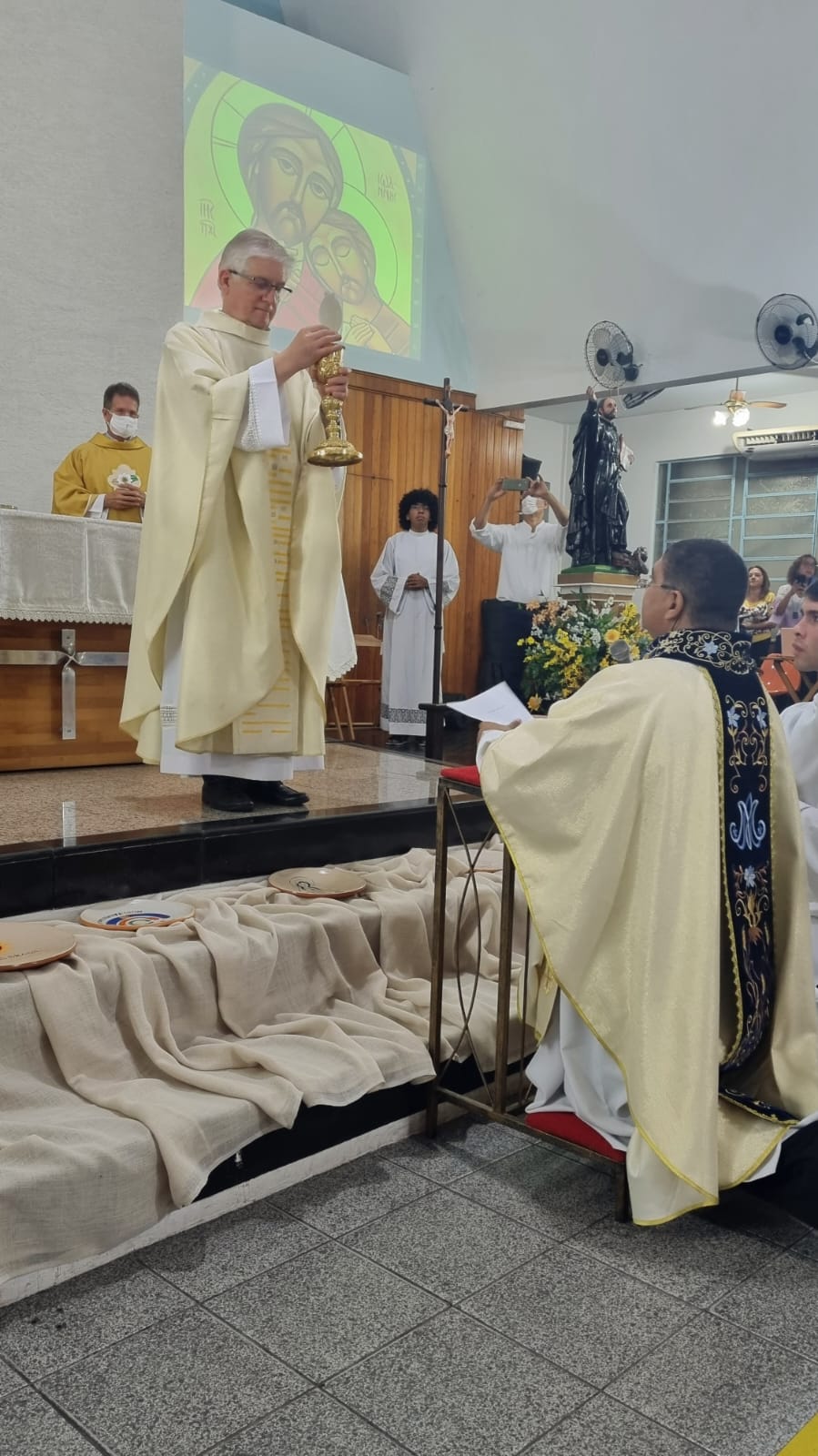 Durante a missa, Pe. Smyda, recordou a missão de Jesus Cristo que nos foi confiada desde o batismo e que testemunha a compaixão pela vida do povo, uma experiência pessoal de quem se deixa afetar pela voz do Bom Pastor. “Celebrar este momento da entrega ou da resposta definitiva com o abrir da vida ao chamado de Deus é especial e ele (Pe. Adilson) em 92 se deu conta disso e se dispôs a servir como Deus quiser, como peregrino… Presente na vida da comunidade, das pessoas, do povo, à exemplo de Jesus que assumiu o projeto de Deus. De um jeito especial, Pe. Adilson o segue e atente a este chamado.”
