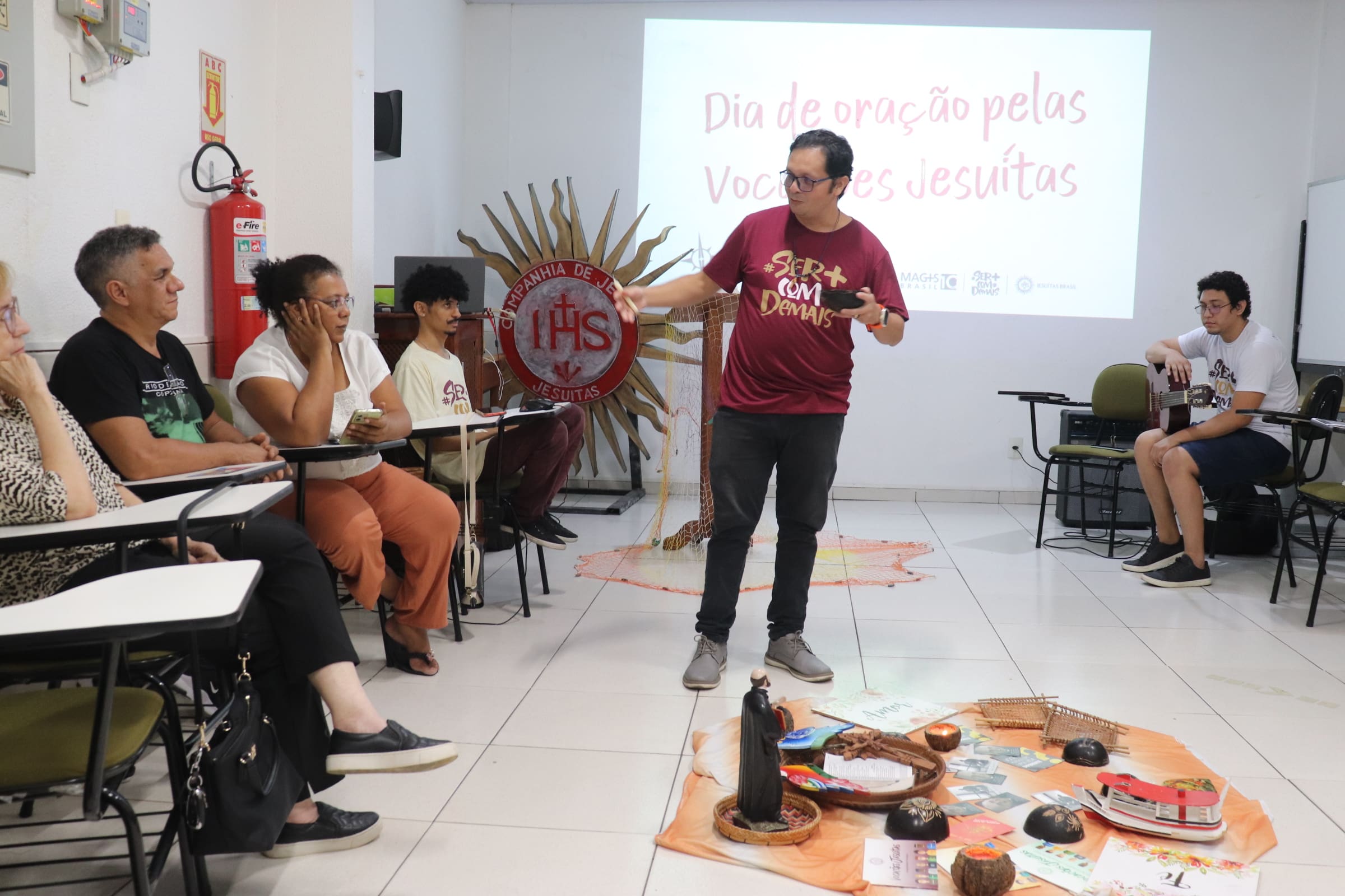 “Neste círculo, recordamos nossa água, rica e bela, mas tão perseguida nos dias de hoje. Olhamos para a grande seca que afeta a Amazônia, onde nossos ribeirinhos e indígenas estão sofrendo de tantas formas. A vocação é vida, e ela nos convoca a trabalhar pela vida de nossos irmãos e irmãs que sofrem”, disse Márcio. Ele ressaltou a importância de ouvir o chamado de Deus, como fizeram Inácio de Loyola e Pedro Arrupe, figuras centrais da Companhia de Jesus, que, por meio de suas experiências e pausas, encontraram uma resposta clara ao chamado divino.