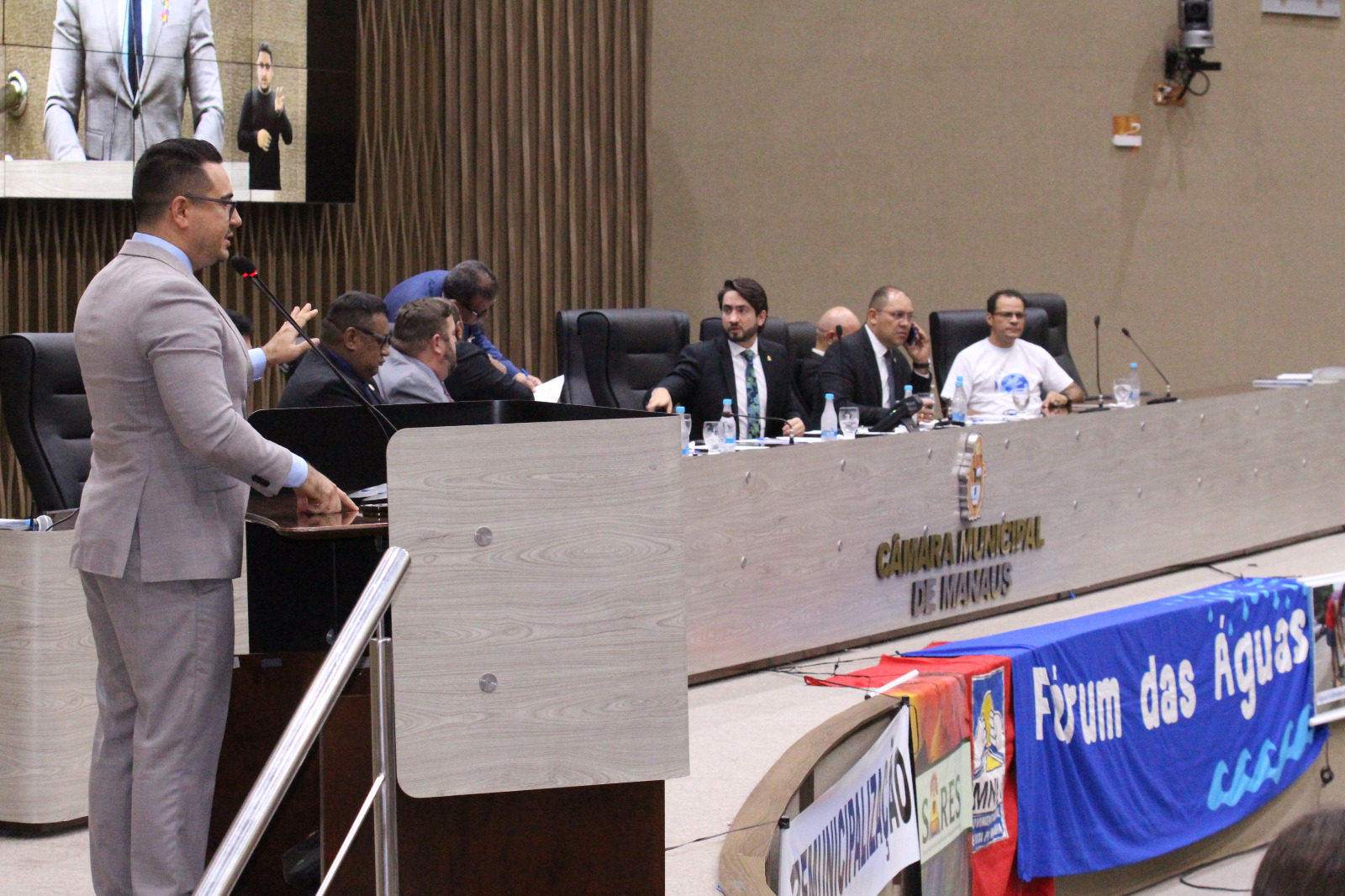 Durante a sessão, outros membros do Fórum das Águas, da Associação dos Moradores do Conjunto Habitacional Flamanal, do Comitê de Bacias do Tarumã-Açu e Movimento Nacional de luta pela moradia, se fizeram presentes.