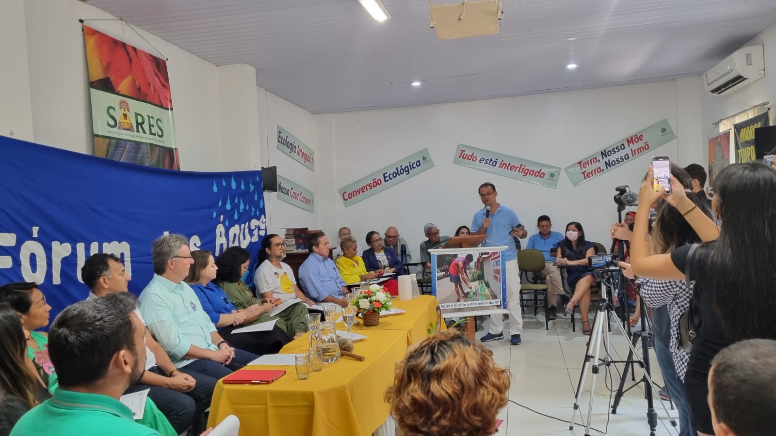 Pe. Sandoval Rocha, SJ, Assessor do SARES, membro ativo do Fórum das Águas e Doutor em Ciências Sociais com tese sobre “A luta pela água na Amazônia”, direcionou um pedido aos candidatos e candidatas presentes, alertando-os sobre a ética na política. “Não vamos separar a ética da política. Ética e política são dois fatores essenciais. Quando falo de ética eu estou dizendo o seguinte: não vamos deixar, pessoal, que o dinheiro seja mais importante do que a vida. Não vamos deixar que o mercado seja mais importante que a natureza. ”