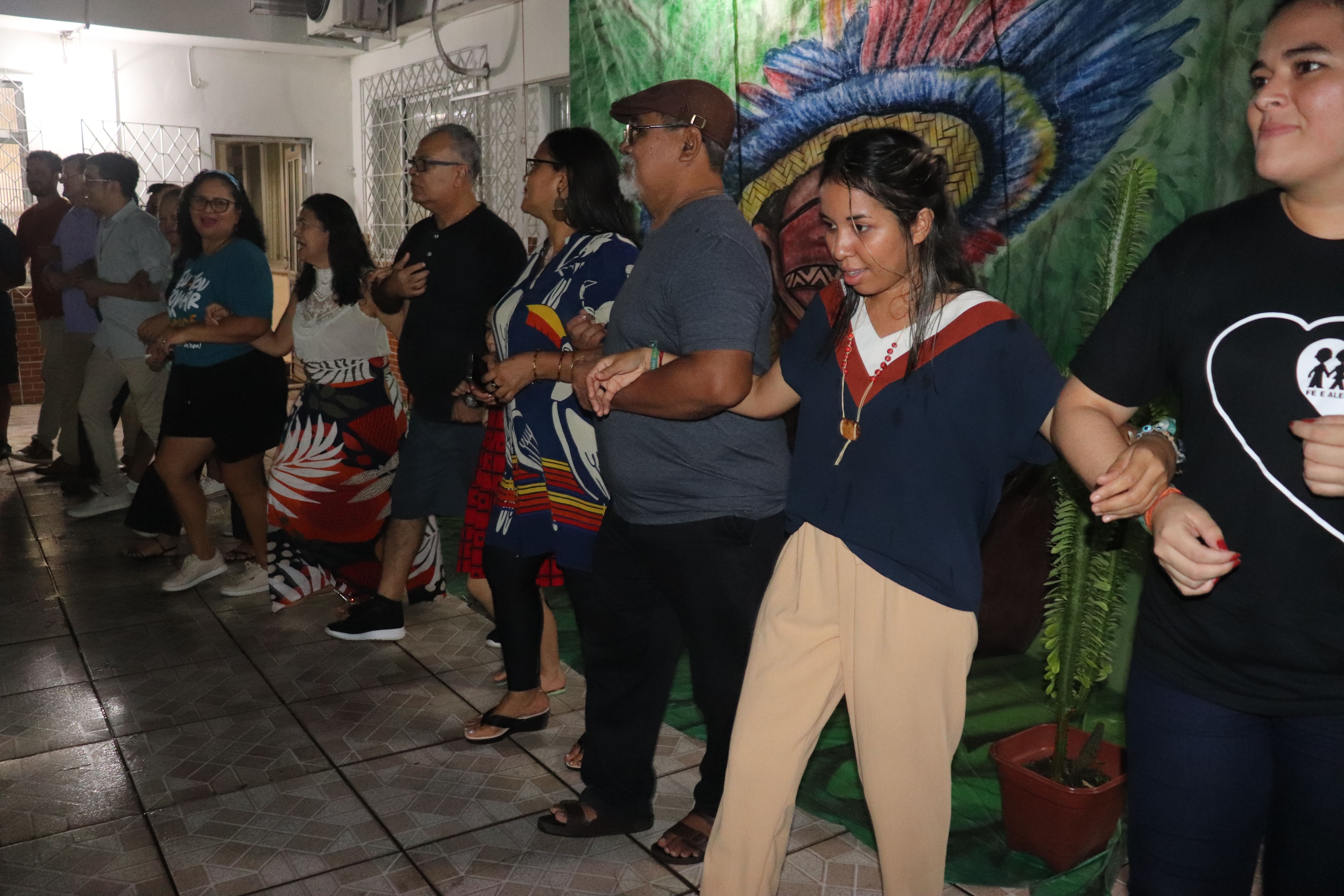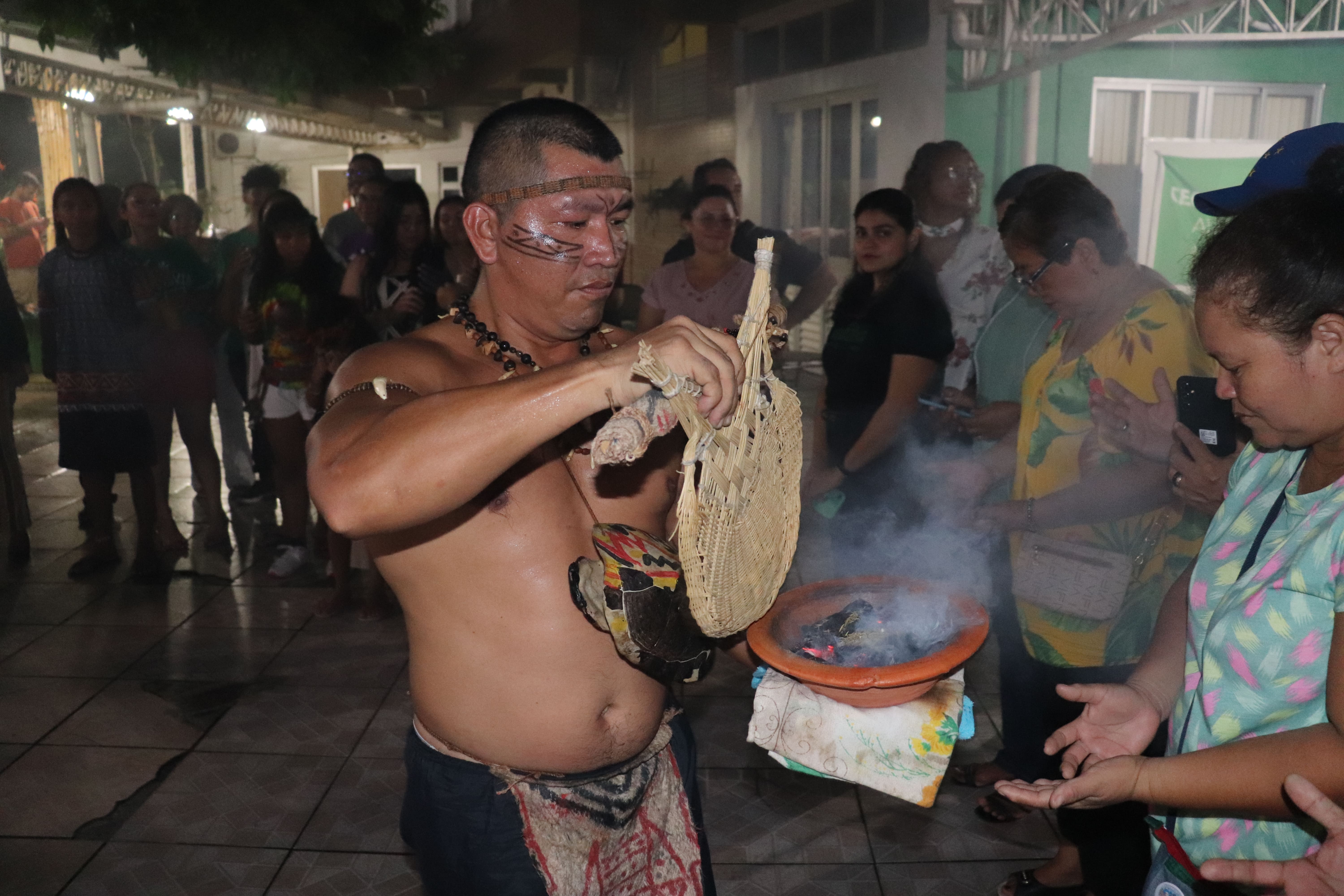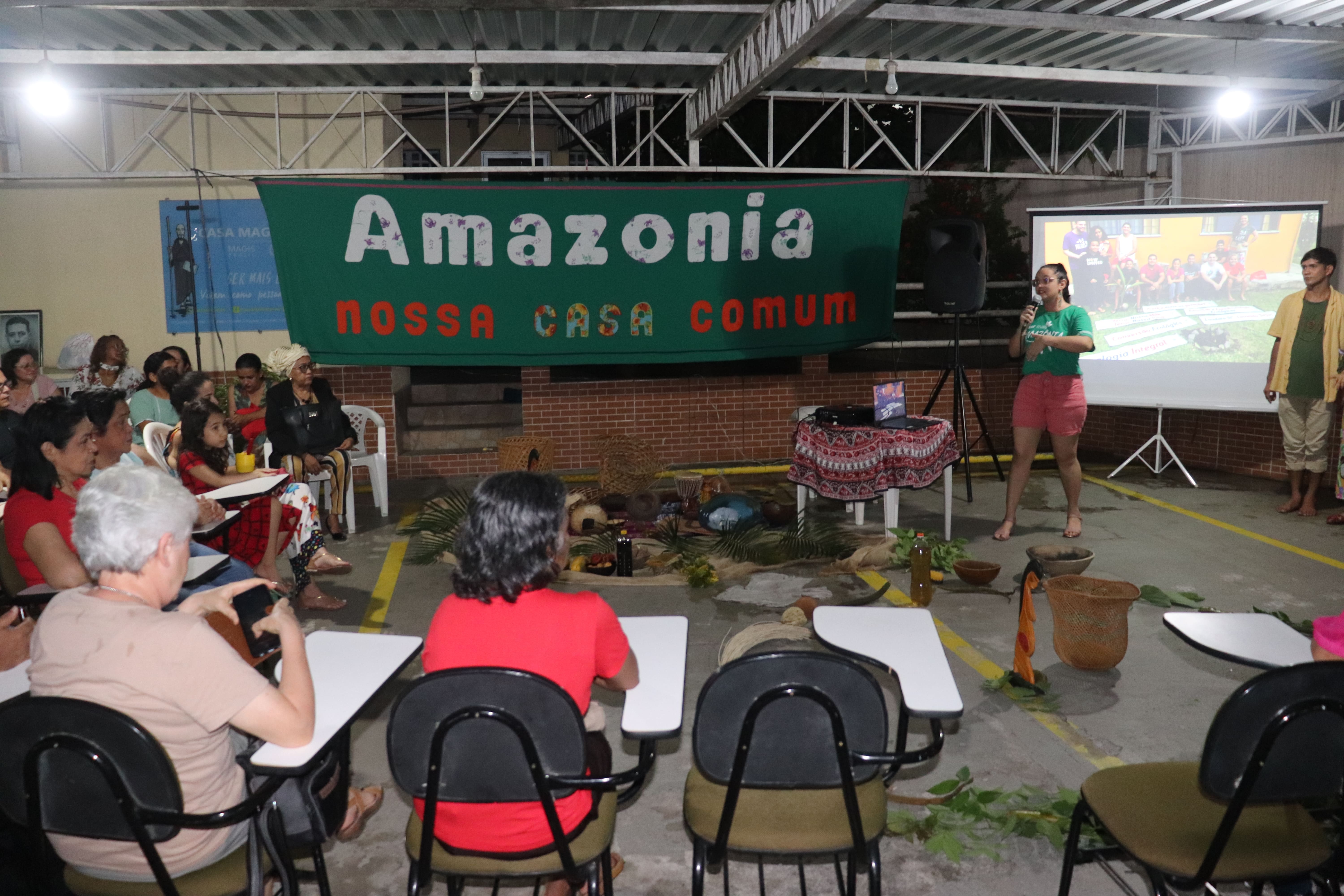 Realizada no Espaço Loyola em Manaus, a segunda edição da Noite Ecológica proporcionou aos participantes uma rica experiência cultural e espiritual, em consonância com a preservação e o cuidado da Mãe Terra. O evento contou com apresentações culturais, um “paneiro de escuta” e momentos místicos com elementos da região amazônica.