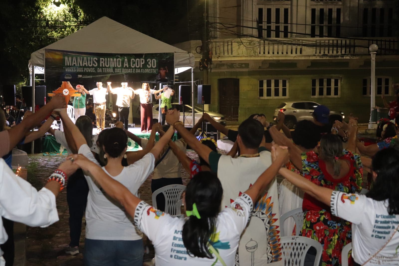 O primeiro dia, 03 de outubro, foi marcado pela Vigília Popular pela Amazônia – Vozes do Povo e da Terra, na Praça do Congresso, no centro da capital. O encontro reuniu representantes de diferentes denominações religiosas e organizações sociais para refletir sobre a preservação da floresta, o acesso ao saneamento básico e o papel da sabedoria dos povos indígenas na construção de um futuro sustentável.