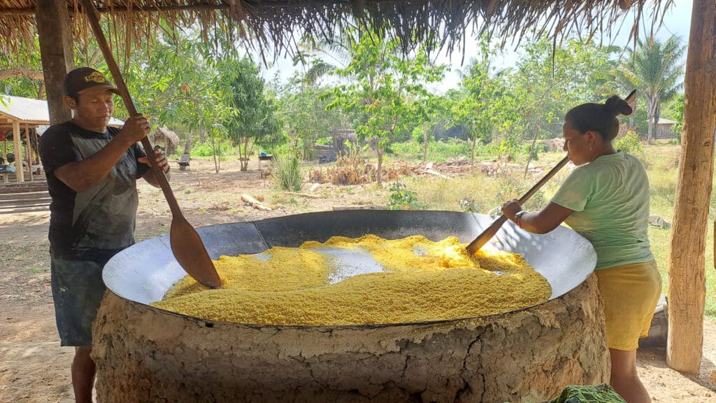 Nas proximidades de Boa Vista, o trabalho alcança também o coração dos territórios indígenas por meio da missão em Serra da Lua. A partir da comunidade de Novo Paraíso, os padres Pepe Castillo, S.J., e Paco Almenar, S.J., realizam uma imersão completa: acompanham de perto a vida, a liturgia, os sonhos e as lutas de 28 comunidades pertencentes aos povos originários Wapishana e Macuxi.
