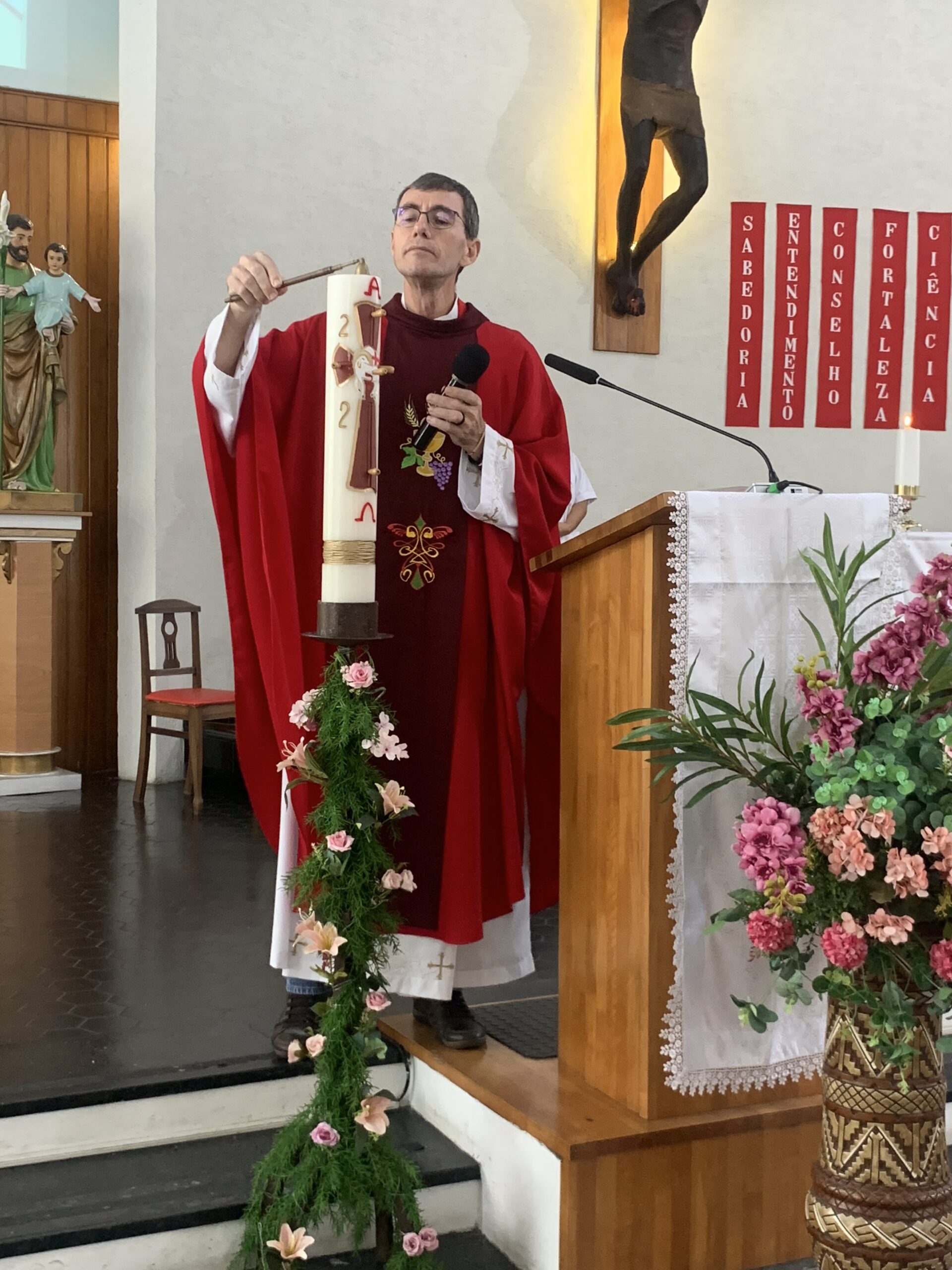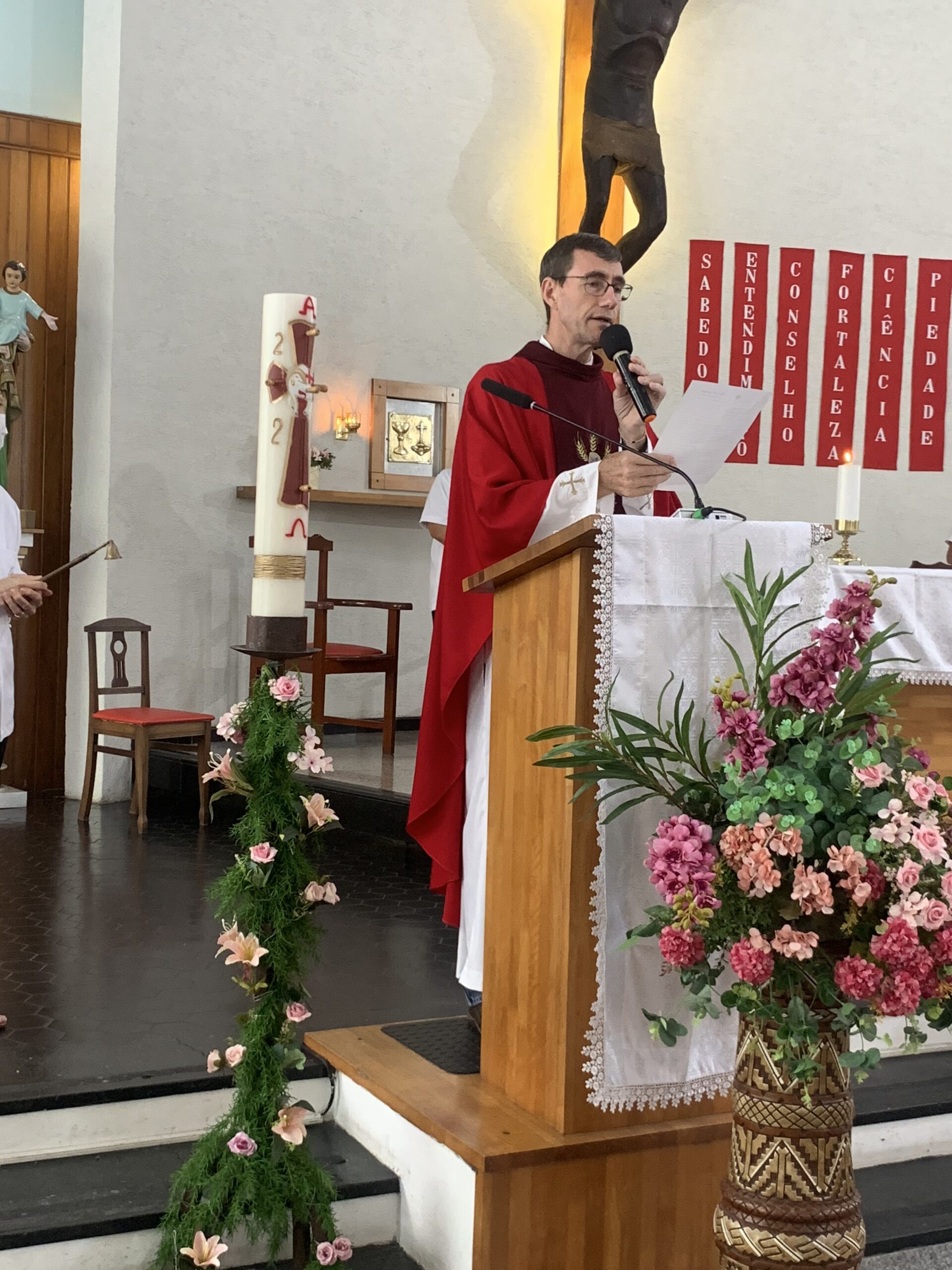 O Pe. Silas Silva, SJ, coordenador do Núcleo Apostólico de Roraima, comentou que a Festa de Pentecostes “teve muita gente, teve muita presença da Igreja, dos movimentos, das pastorais, e também celebrou os 70 anos da presença dos missionários e missionárias da Consolata. Além disso, teve distribuição de pão, manifestando o desejo da Igreja para que cada pessoa, cada família também pudesse partilhar o que tem com os mais necessitados”. A celebração foi presidida por Dom Evaristo Spengler, novo bispo da Diocese, em sua primeira celebração solene do pentecostes.