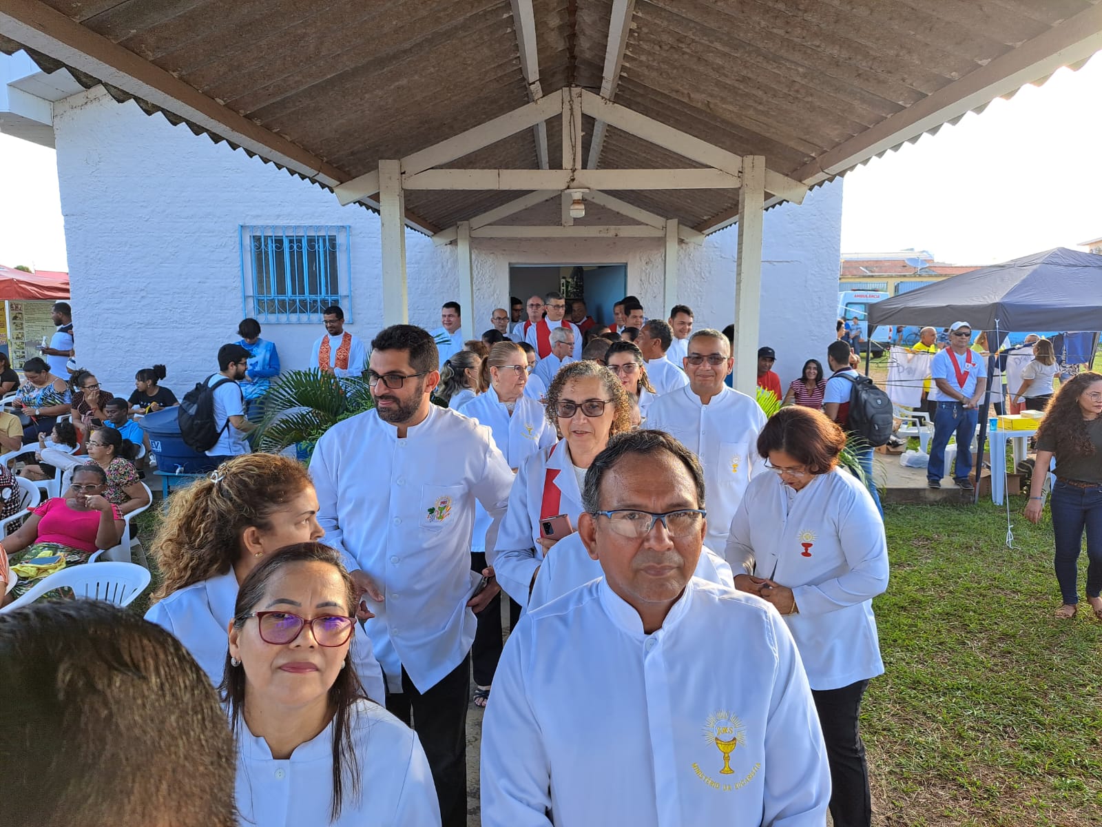 No domingo (28), foi realizada uma missa pela manhã na Área Missionária, com boa participação dos fiéis. À tarde, segundo Pe. Alex, “o convite era para todos participarmos da Festa de Pentecostes como Arquidiocese de Manaus. Alguns ônibus foram contratados para transportarem comunitários que foram participar, bem como ministros e coroinhas que atuaram durante a missa. Nossa Área Missionária, por pertencer ao Setor Dom Luiz, ficou encarregada de destacar 45 pessoas para ajudarem com a coleta. Foi um trabalho preparado com bastante antecedência e zelo, acredito que muito gratificante apesar do calor intenso que todos encaramos na tarde de ontem”, comentou o Jesuíta. A celebração solene aconteceu no sambódromo.