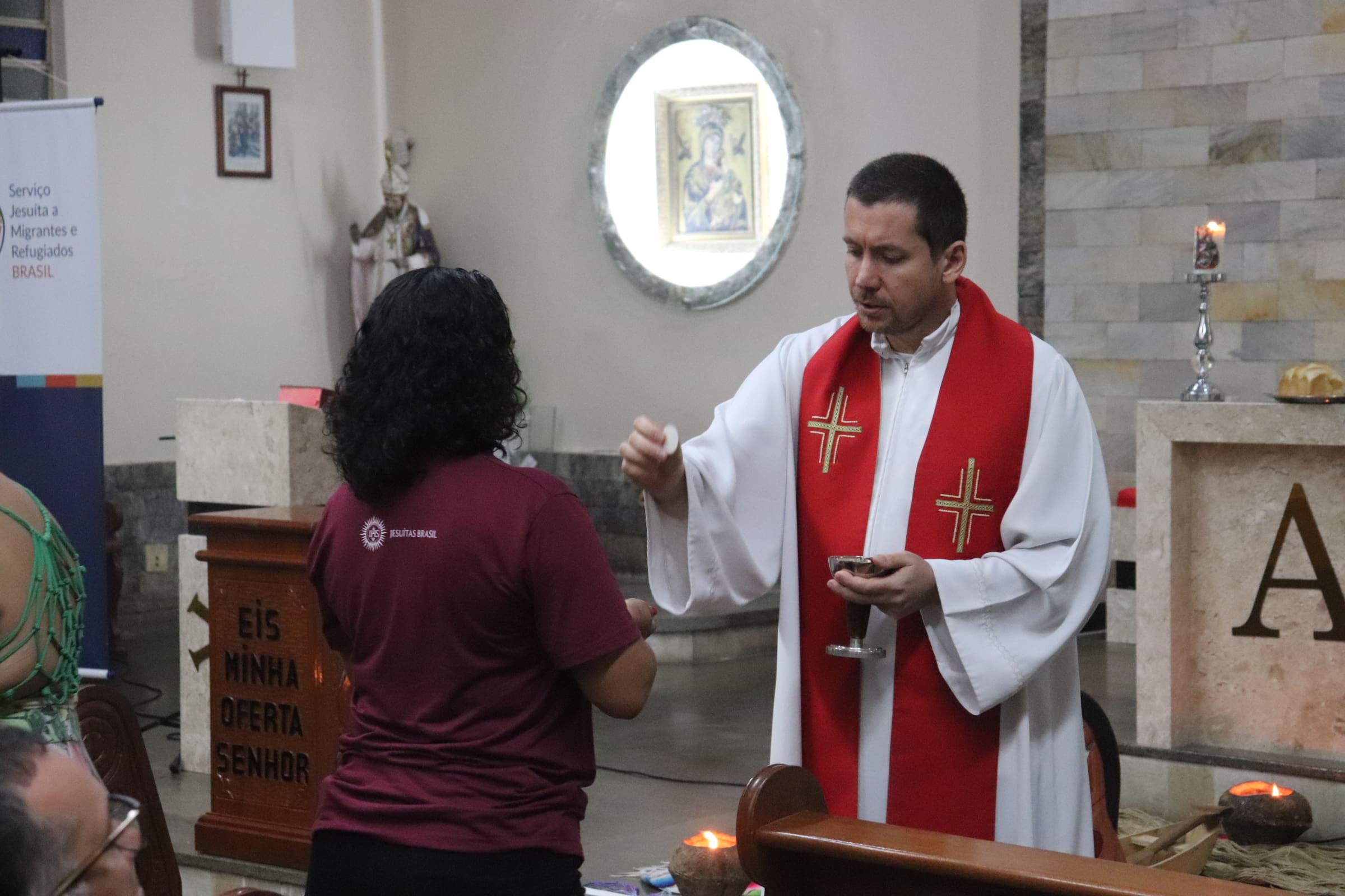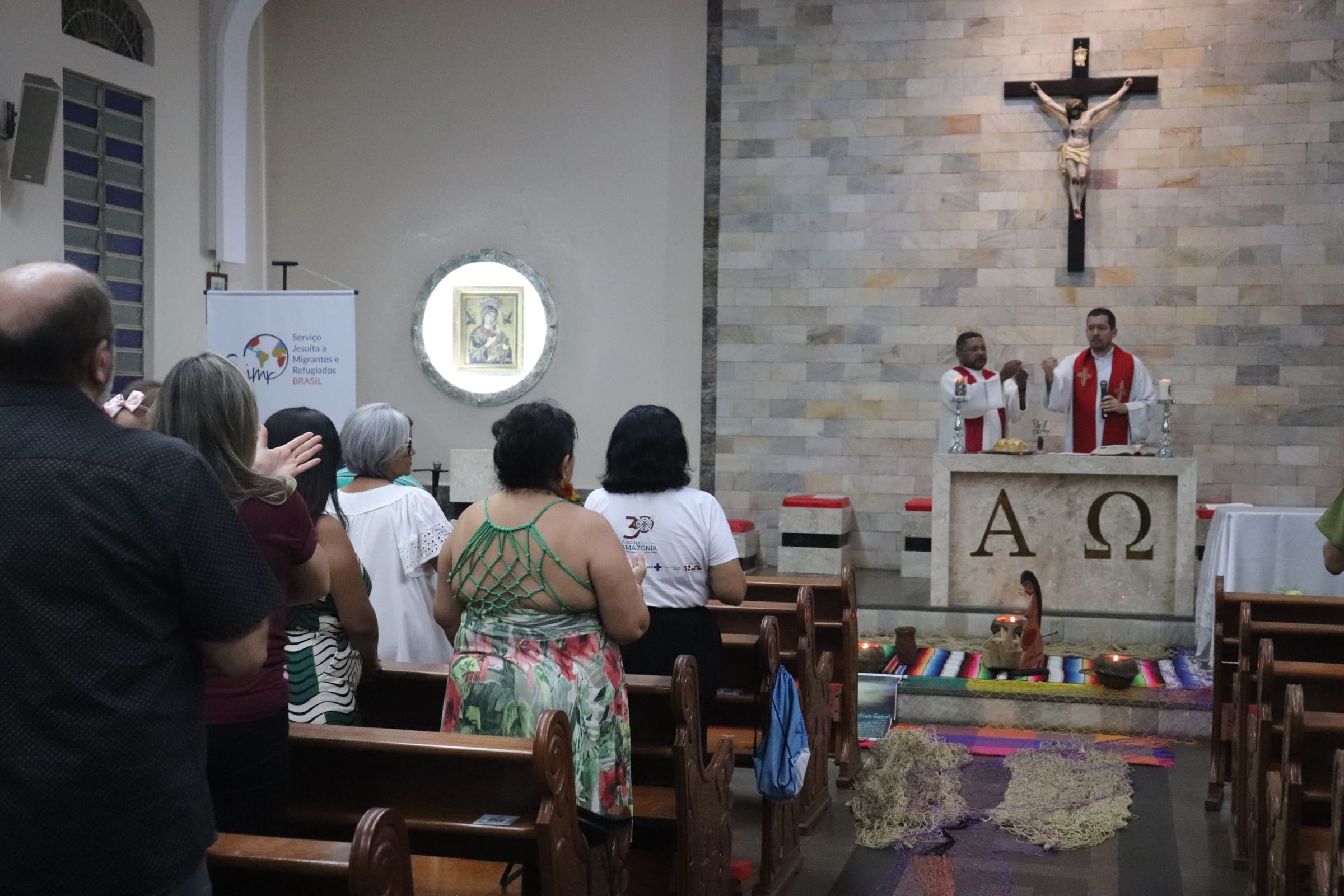 Na noite de quinta-feira, 26 de setembro, a Capela Nossa Senhora do Perpétuo Socorro, no bairro Aparecida, em Manaus (AM), foi palco de uma missa em celebração aos aniversários do Serviço Amazônico de Ação, Reflexão e Educação Socioambiental (Sares) e do Serviço Jesuíta a Migrantes e Refugiados (SJMR – Manaus). O Sares completou 21 anos de atuação, enquanto o SJMR celebrou seis anos. A missa foi presidida pelos padres Adriano Luís Hahn, SJ, e Silvio Marques, SJ, reunindo representantes de diversas obras da Companhia de Jesus e parceiros, além de membros da comunidade local.
