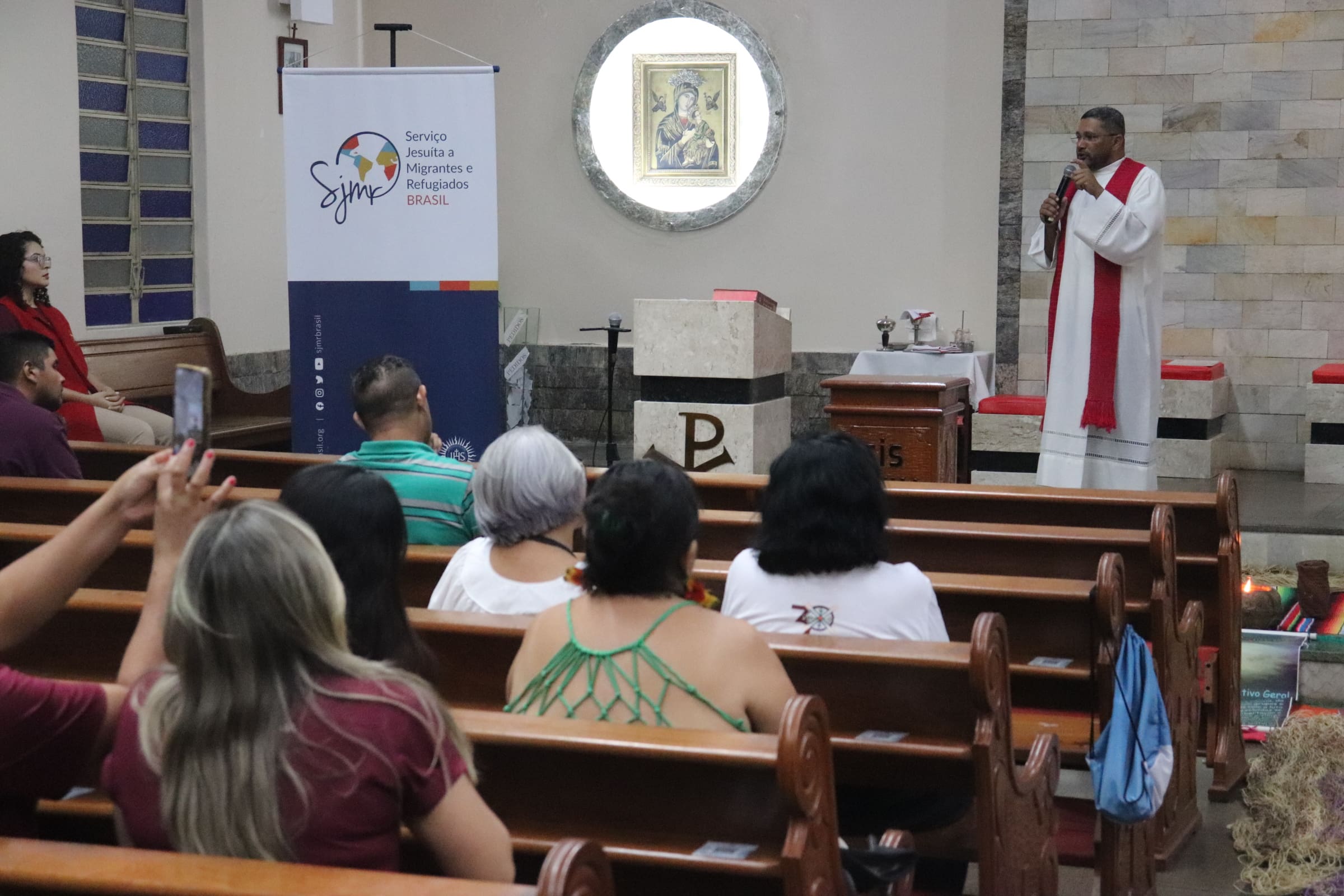 Mikely da Silva, Analista Social do SJMR, também falou durante a celebração, refletindo sobre o papel do SJMR em Manaus ao longo dos últimos seis anos. “Oferecemos apoio fundamental a migrantes e refugiados, com cursos de português, emissão de documentos e ajuda na inserção no mercado de trabalho. Cada sorriso conquistado e cada desafio superado são motivo de celebração”, afirmou Mikely. Ela também destacou a importância de renovar o compromisso com o futuro, promovendo dignidade e esperança para todos aqueles que buscam refúgio e uma nova vida na Amazônia.